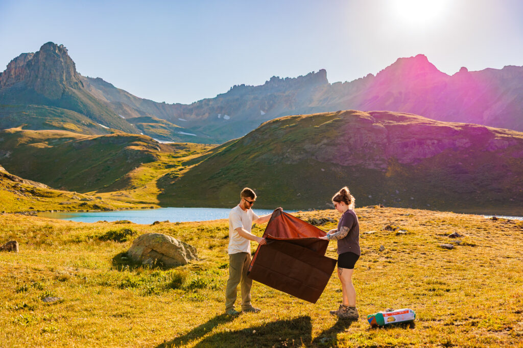 Once we made it to Ice Lake, we set up camp. Morgan and Anthony pitched their tent, and I took some photos of their wedding day details. As the sun started to set, we all ate some backpacking meals for dinner and got ready for bed.